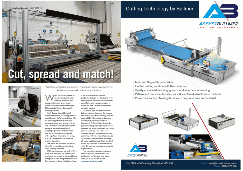 HSL have extended their cutting room solutions with a purchase of a 3rd Bullmer cutter. In addition to the Multi ply cutters Procut and Turbocut, the company has now invested in a single ply cutter for small runs and with Pattern macthing solution for the wide range of fabrics offered to the customers.